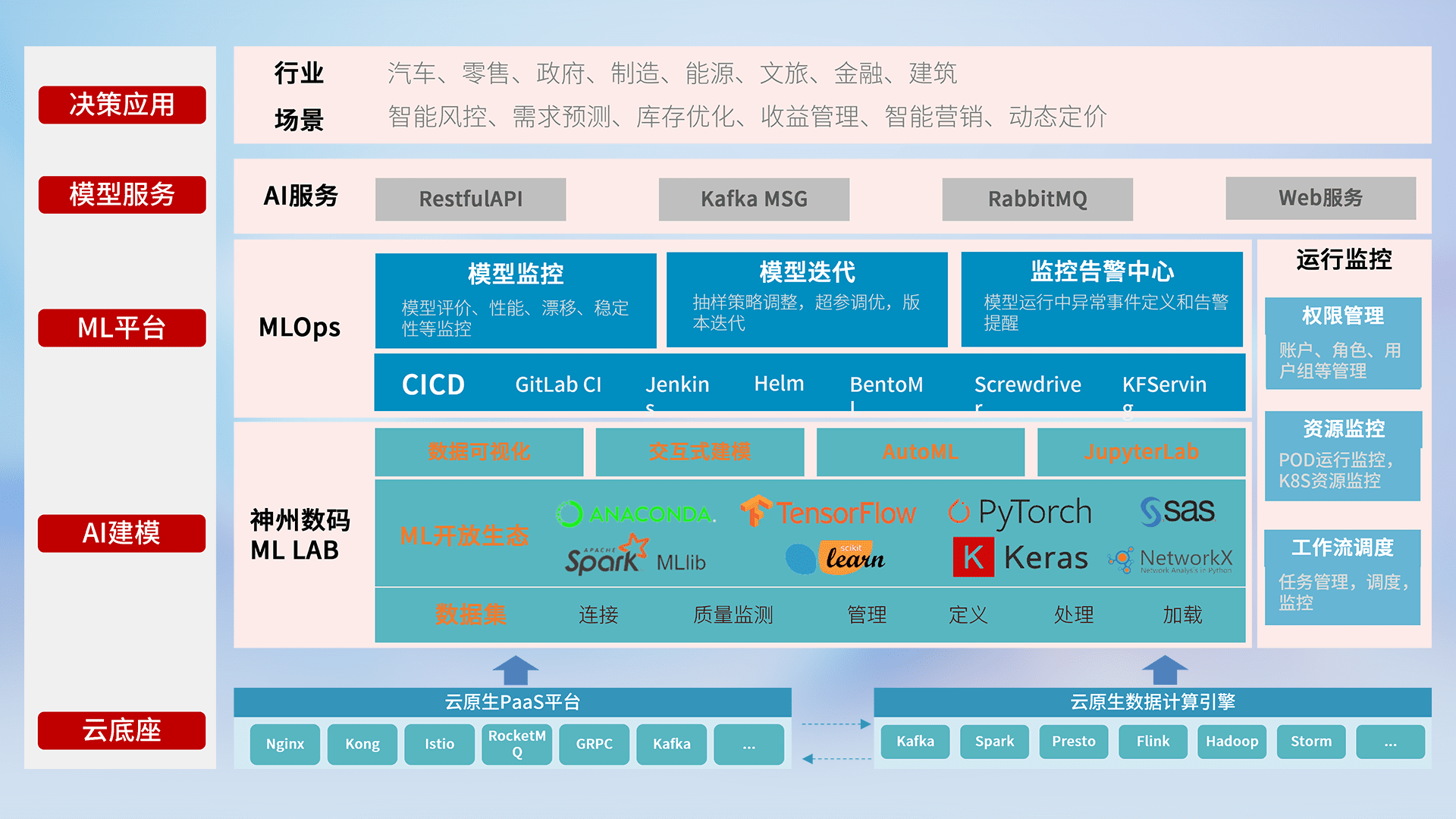 数据+模型双引擎驱动,,面向智能服务场景,,快速灵活利用AI技术,,,,支持业务决策,,,,助力企业智能化转型破局。。